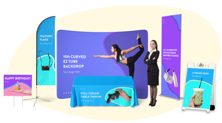You can choose the size, shape, and material to print on. There is an aesthetically pleasing fabric and durable vinyl. The former is more expensive, while the latter is more resistant to wear and tear. We offer the greatest range of banner types, like: